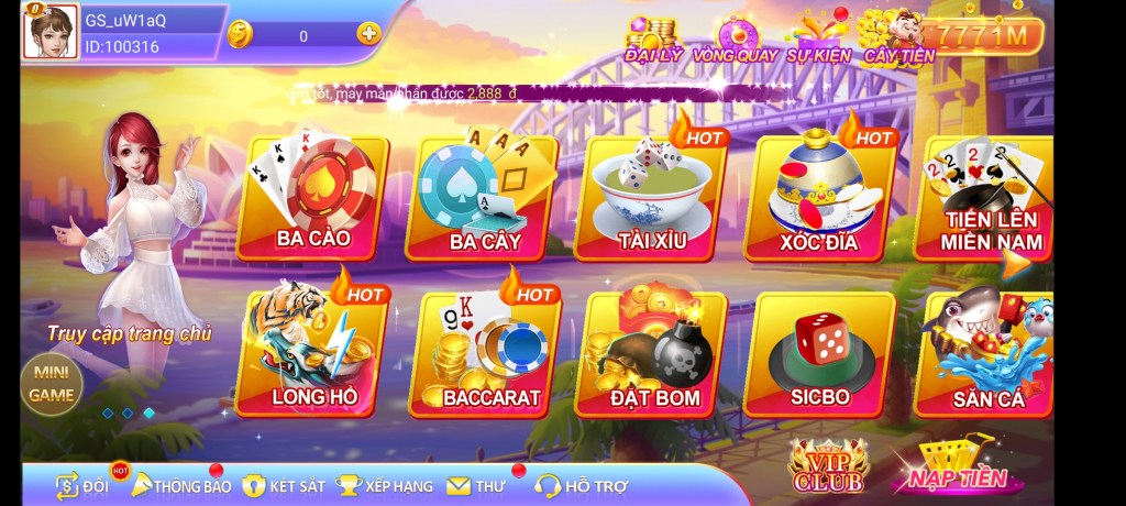Nhiều game bài đa dạng và phong phú như: Baccarat, Liêng, Xóc đĩa, tiến lên miền nam, Long hổ, Tài xỉu, Đua xe, Quay hũ…