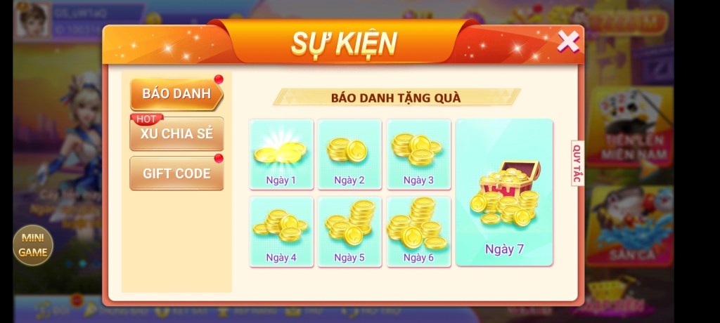 Quà tặng hàng ngày khi điểm danh