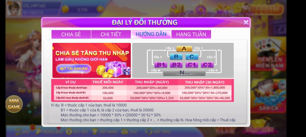 Với ứng dụng AWIN68, người chơi không chỉ được giải trí mà còn có thể kiếm tiền với chế độ đại lý hấp dẫn. Với mỗi thành viên tải ứng dụng sẽ có một nhân viên tích hợp sanex vào ứng dụng. Công việc của thành viên là chia sẻ liên kết trong ứng dụng đó, bất kỳ ai đăng ký theo liên kết đó sẽ là một phần trong hệ thống liên kết của bạn.